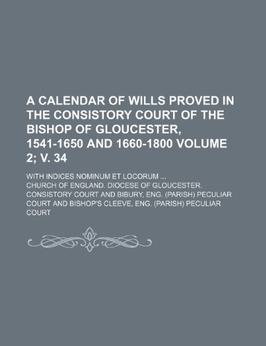 A calendar of wills proved in the Consistory court of the bishop of Gloucester, 1541-1650 and 1660-1800; With indices nominum et locorum Volume 2; v. 34 full version