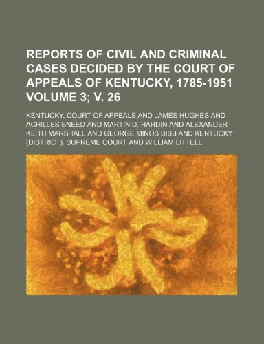Reports of civil and criminal cases decided by the Court of Appeals of Kentucky, 1785-1951 Volume 3; v. 26 full version