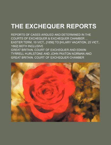 The Exchequer reports; Reports of cases argued and determined in the courts of Exchequer & Exchequer chamber Easter term, 19 Vict., [1856] to [Hilary vacation, 25 Vict 1862] both inclusive full version