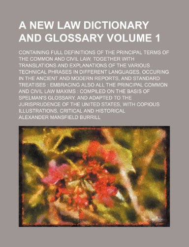 You are about to access our book library "A new law dictionary and glossary; containing full definitions of the principal terms of the common and civil law, together with translations and ... in different languages, occuring in Volume 1 full version"