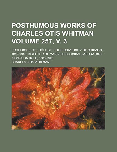 Posthumous Works of Charles Otis Whitman; Professor of Zoölogy in the University of Chicago, 1892-1910; Director of Marine Biological Laboratory at Woods Hole, 1888-1908 Volume 257, v. 3 full version