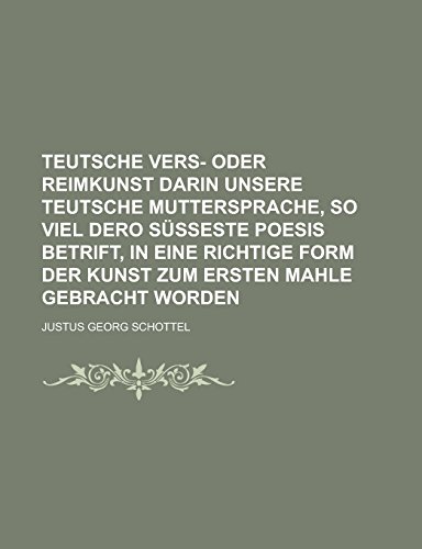 Teutsche Vers- oder Reimkunst darin Unsere Teutsche Muttersprache, so viel dero süßeste Poesis betrift, in eine richtige Form der Kunst zum ersten mahle gebracht worden full version