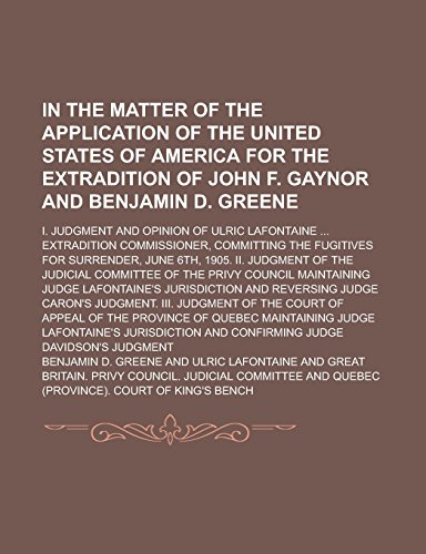 You are about to access our book library "In the Matter of the Application of the United States of America for the Extradition of John F. Gaynor and Benjamin D. Greene; I. Judgment and Opinion ... Commissioner, Committing the Fugitives for full version"