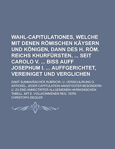 Wahl-Capitulationes, welche mit denen römischen Käysern und Königen, dann des H. Röm. Reichs Khurfürsten, seit Carolo V. biß auff Josephum I. ... summarischer Rubricir- u. Versiculirung d. full version