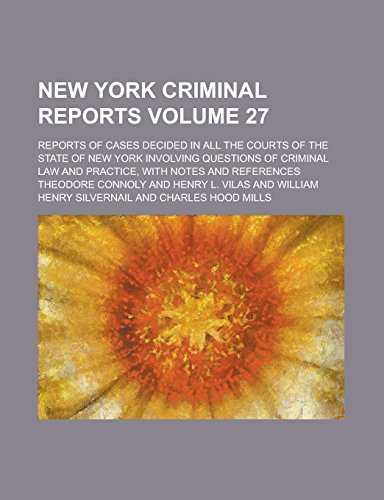 New York Criminal Reports; Reports of Cases Decided in All the Courts of the State of New York Involving Questions of Criminal Law and Practice, with Notes and References Volume 27 full version