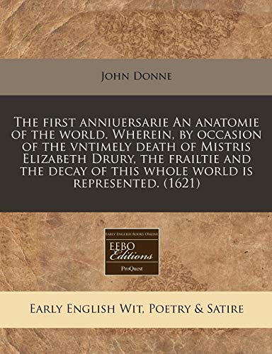 The first anniuersarie An anatomie of the world. Wherein, by occasion of the vntimely death of Mistris Elizabeth Drury, the frailtie and the decay of this whole world is represented. (1621) full version