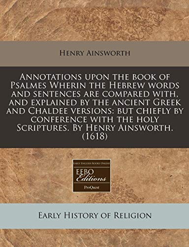 You are about to access our book library "Annotations upon the book of Psalmes Wherin the Hebrew words and sentences are compared with, and explained by the ancient Greek and Chaldee versions: ... holy Scriptures. By Henry Ainsworth. (1618) full version" .