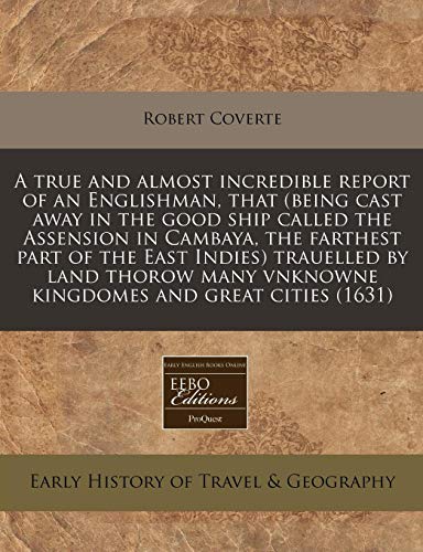 You are about to access our book library "A true and almost incredible report of an Englishman, that (being cast away in the good ship called the Assension in Cambaya, the farthest part of the ... vnknowne kingdomes and great cities (1631) full version"