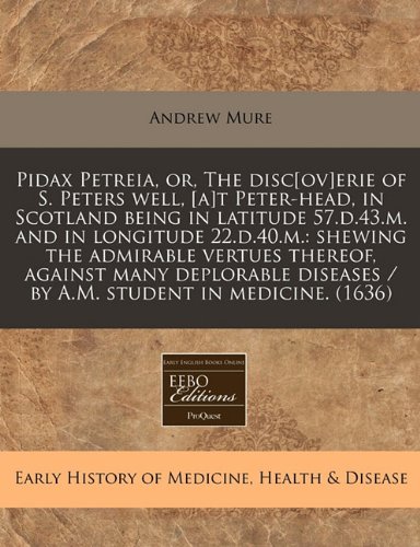 Pidax Petreia, or, The disc[ov]erie of S. Peters well, [a]t Peter-head, in Scotland being in latitude 57.d.43.m. and in longitude 22.d.40.m.: shewing ... / by A.M. student in medicine. (1636) full version