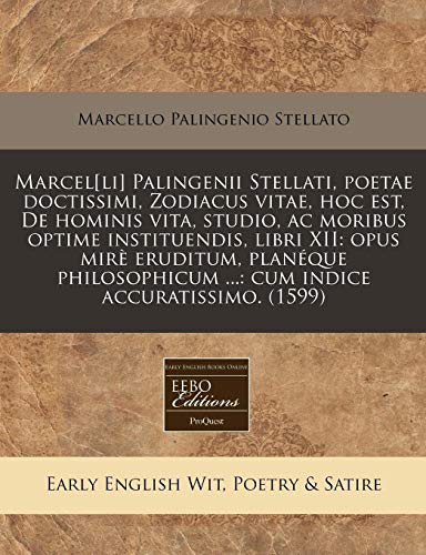 You are about to access our book library "Marcel[li] Palingenii Stellati, poetae doctissimi, Zodiacus vitae, hoc est, De hominis vita, studio, ac moribus optime instituendis, libri XII: opus ... indice accuratissimo. (1599) (Latin Edition) full version"
