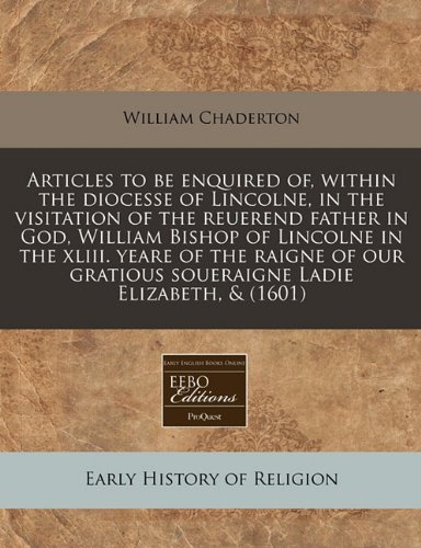 You are about to access our book library "Articles to be enquired of, within the diocesse of Lincolne, in the visitation of the reuerend father in God, William Bishop of Lincolne in the xliii. ... gratious soueraigne Ladie Elizabeth, & (1601) full version"