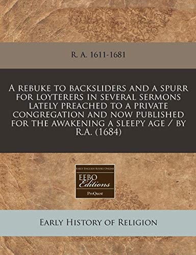 A rebuke to backsliders and a spurr for loyterers in several sermons lately preached to a private congregation and now published for the awakening a sleepy age / by R.A. (1684) full version