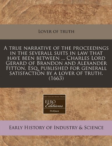 You are about to access our book library "A true narrative of the proceedings in the severall suits in law that have been between ... Charles Lord Gerard of Brandon and Alexander Fitton, Esq. ... satisfaction by a lover of truth. (1663) full version"