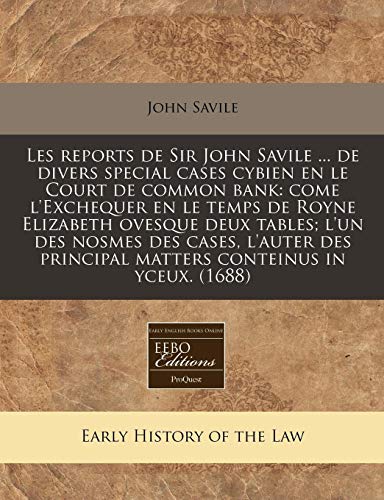 You are about to access our book library "Les reports de Sir John Savile ... de divers special cases cybien en le Court de common bank: come l'Exchequer en le temps de Royne Elizabeth ovesque ... conteinus in yceux. (1688) (French Edition) full version"