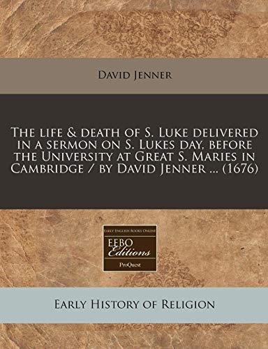 The life & death of S. Luke delivered in a sermon on S. Lukes day, before the University at Great S. Maries in Cambridge / by David Jenner ... (1676) full version