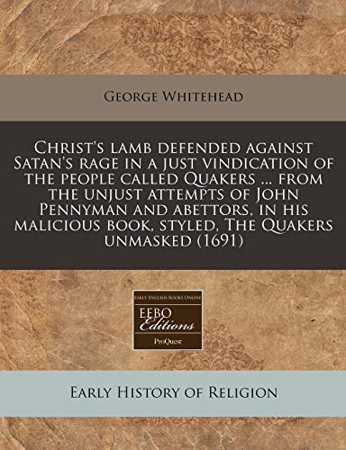 Christ's lamb defended against Satan's rage in a just vindication of the people called Quakers ... from the unjust attempts of John Pennyman and ... book, styled, The Quakers unmasked (1691) full version