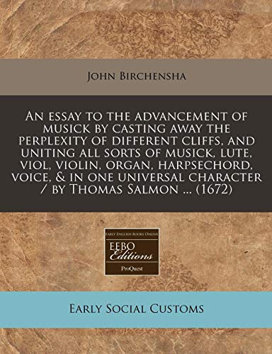 You are about to access our book library "An essay to the advancement of musick by casting away the perplexity of different cliffs, and uniting all sorts of musick, lute, viol, violin, organ, ... character / by Thomas Salmon ... (1672) full version"