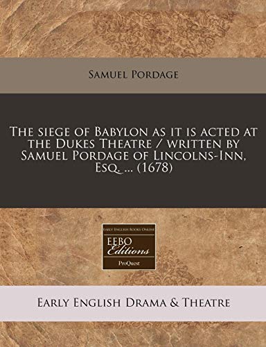 The siege of Babylon as it is acted at the Dukes Theatre / written by Samuel Pordage of Lincolns-Inn, Esq. ... (1678) full version