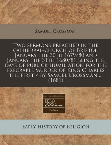 You are about to access our book library "Two sermons preached in the cathedral-church of Bristol, January the 30th 1679/80 and January the 31th 1680/81 being the days of publick humiliation ... the first / by Samuel Crossman ... (1681) full version"