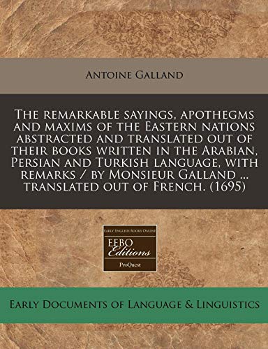 You are about to access our book library "The remarkable sayings, apothegms and maxims of the Eastern nations abstracted and translated out of their books written in the Arabian, Persian and ... Galland ... translated out of French. (1695) full version"