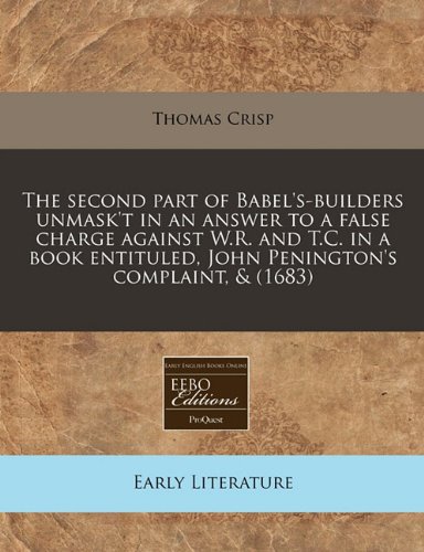 The second part of Babel's-builders unmask't in an answer to a false charge against W.R. and T.C. in a book entituled, John Penington's complaint, & (1683) full version