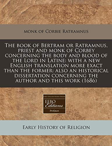 You are about to access our book library "The book of Bertram or Ratramnus, priest and monk of Corbey concerning the body and blood of the Lord in Latine: with a new English translation more ... concerning the author and this work (1686) full version"