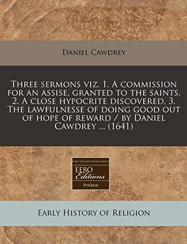 Three sermons viz. 1. A commission for an assise, granted to the saints, 2. A close hypocrite discovered, 3. The lawfulnesse of doing good out of hope of reward / by Daniel Cawdrey ... (1641) full version