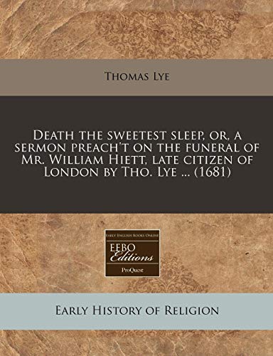 Death the sweetest sleep, or, a sermon preach't on the funeral of Mr. William Hiett, late citizen of London by Tho. Lye ... (1681) full version