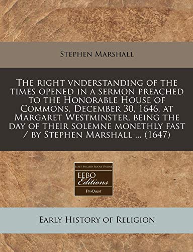The right vnderstanding of the times opened in a sermon preached to the Honorable House of Commons, December 30, 1646, at Margaret Westminster, being ... fast / by Stephen Marshall ... (1647) full version