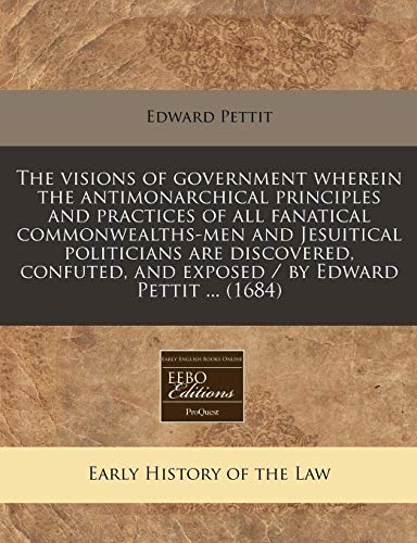 The visions of government wherein the antimonarchical principles and practices of all fanatical commonwealths-men and Jesuitical politicians are ... and exposed / by Edward Pettit ... (1684) full version