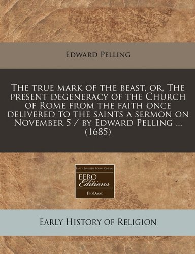 The true mark of the beast, or, The present degeneracy of the Church of Rome from the faith once delivered to the saints a sermon on November 5 / by Edward Pelling ... (1685) full version