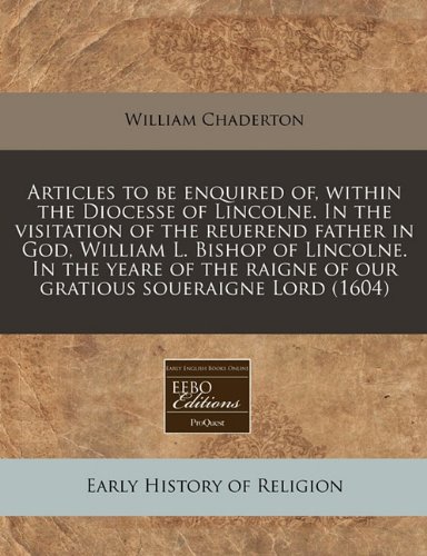 You are about to access our book library "Articles to be enquired of, within the Diocesse of Lincolne. In the visitation of the reuerend father in God, William L. Bishop of Lincolne. In the ... raigne of our gratious soueraigne Lord (1604) full version"