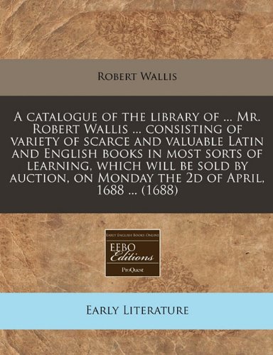 A catalogue of the library of ... Mr. Robert Wallis ... consisting of variety of scarce and valuable Latin and English books in most sorts of ... on Monday the 2d of April, 1688 ... (1688) full version