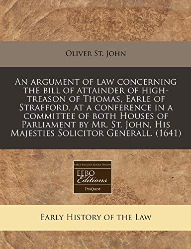 You are about to access our book library "An argument of law concerning the bill of attainder of high-treason of Thomas, Earle of Strafford, at a conference in a committee of both Houses of ... His Majesties Solicitor Generall. (1641) full version"