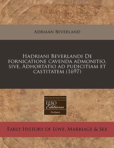 Hadriani Beverlandi De fornicatione cavenda admonitio, sive, Adhortatio ad pudicitiam et castitatem (1697) (Latin Edition) full version
