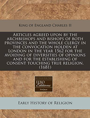 You are about to access our book library "Articles agreed upon by the archbishops and bishops of both provinces and the whole clergy in the convocation holden at London in the year 1562 for ... of consent touching true religion. (1681) full version"