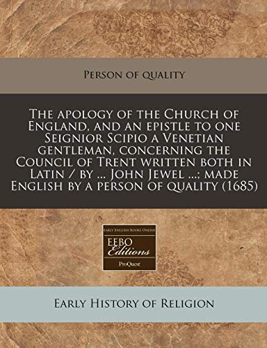 You are about to access our book library "The apology of the Church of England, and an epistle to one Seignior Scipio a Venetian gentleman, concerning the Council of Trent written both in ... made English by a person of quality (1685) full version"