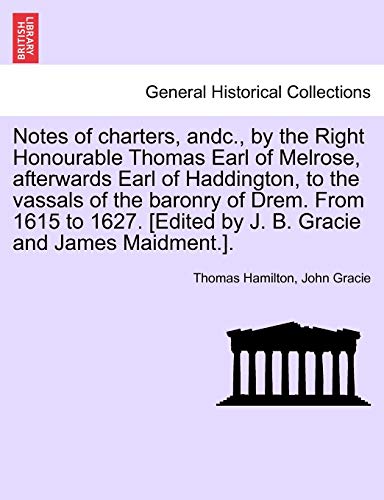 You are about to access our book library "Notes of Charters, Andc., by the Right Honourable Thomas Earl of Melrose, Afterwards Earl of Haddington, to the Vassals of the Baronry of Drem. from ... [edited by J. B. Gracie and James Maidment.]. full version"