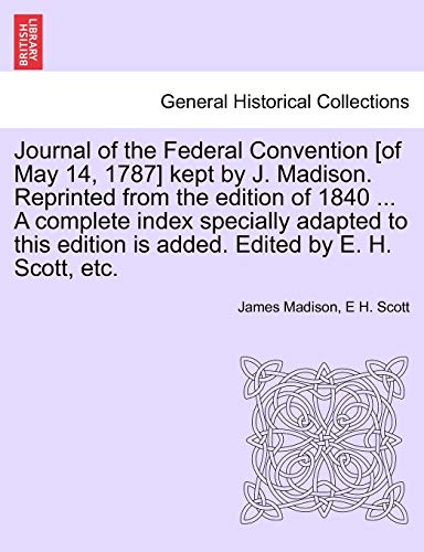 You are about to access our book library "Journal of the Federal Convention [of May 14, 1787] kept by J. Madison. Reprinted from the edition of 1840 ... A complete index specially adapted to this edition is added. Edited by E. H. Scott, etc. full version"