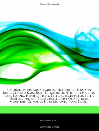 You are about to access our book library "Articles on Austrian Mountain Climbers, Including: Hermann Buhl, Conrad Kain, Kurt Diemberger, Heinrich Harrer, Karl Blodig, Herbert Tichy, Peter Aufschnaiter, Peter Habeler, Ludwig Purtscheller, List of Austrian Mountain Climbers full version"