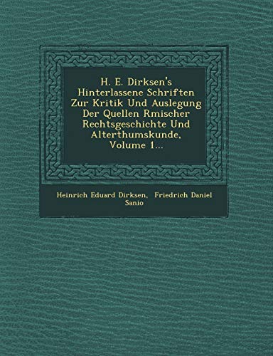 H. E. Dirksen's Hinterlassene Schriften Zur Kritik Und Auslegung Der Quellen R Mischer Rechtsgeschichte Und Alterthumskunde, Volume 1... (English and German Edition) full version