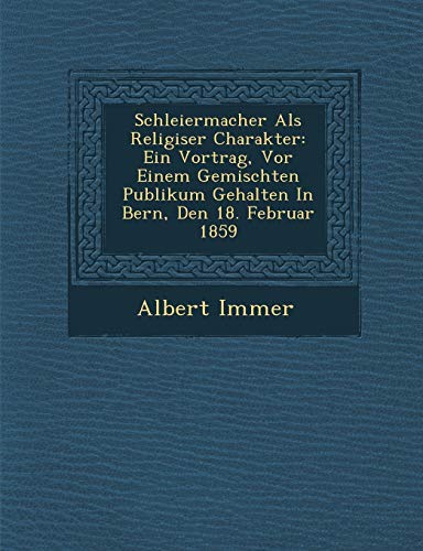 Schleiermacher Als Religiser Charakter: Ein Vortrag, Vor Einem Gemischten Publikum Gehalten In Bern, Den 18. Februar 1859 (German Edition) full version