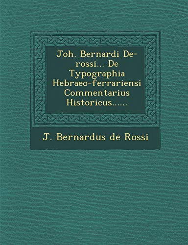 Joh. Bernardi de-Rossi... de Typographia Hebraeo-Ferrariensi Commentarius Historicus...... (Latin Edition) full version