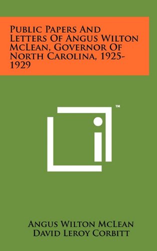 Public Papers and Letters of Angus Wilton McLean, Governor of North Carolina, 1925-1929 full version
