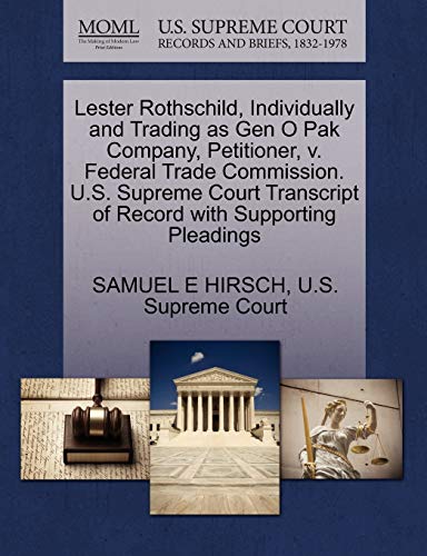 Lester Rothschild, Individually and Trading as Gen O Pak Company, Petitioner, v. Federal Trade Commission. U.S. Supreme Court Transcript of Record with Supporting Pleadings full version