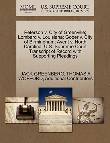Peterson V. City of Greenville; Lombard V. Louisiana; Gober V. City of Birmingham; Avent V. North Carolina; U.S. Supreme Court Transcript of Record with Supporting Pleadings full version