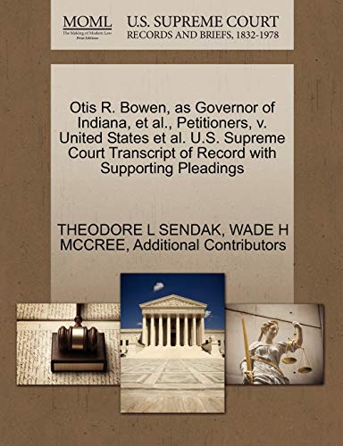 Otis R. Bowen, as Governor of Indiana, et al., Petitioners, v. United States et al. U.S. Supreme Court Transcript of Record with Supporting Pleadings full version