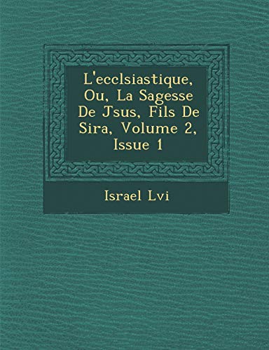L'ecclsiastique, Ou, La Sagesse De Jsus, Fils De Sira, Volume 2, Issue 1 (French Edition) full version
