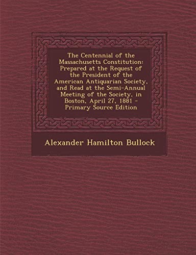 The Centennial of the Massachusetts Constitution: Prepared at the Request of the President of the American Antiquarian Society, and Read at the Semi-A full version