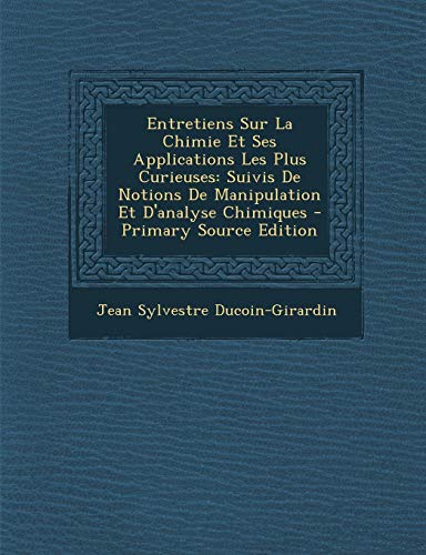 Entretiens Sur La Chimie Et Ses Applications Les Plus Curieuses: Suivis De Notions De Manipulation Et D'analyse Chimiques (French Edition) full version